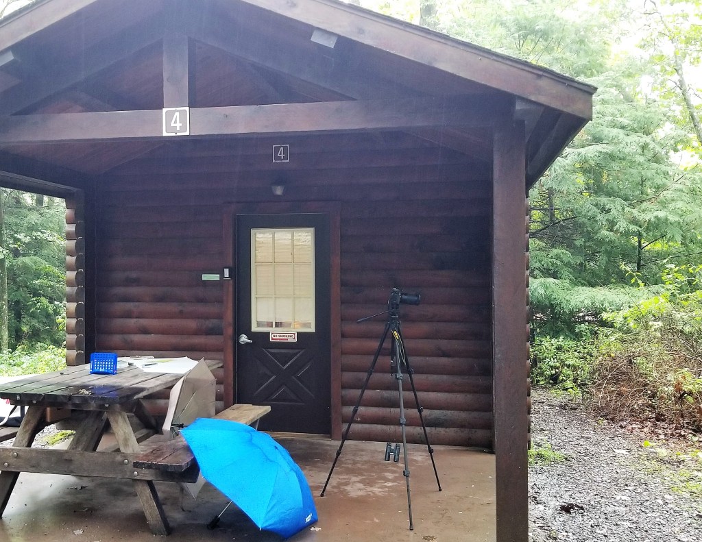 Choose two base sites (A & B) from which you can take some observations. Our plan was to survey the lake near our camping cottage, but when rain washed out the day, we decided to survey the area around our cottage. The porch of our cottage was site A.